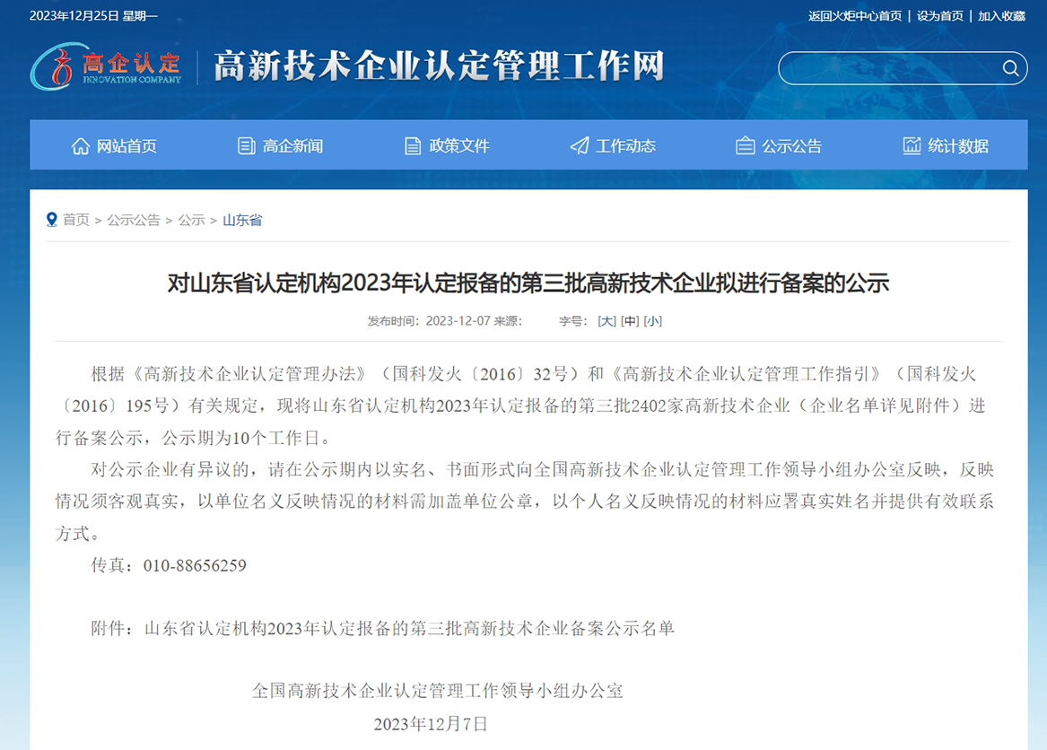 根据《高新技术企业认定管理办法》的公示通知,我公司顺利通过国家高新技术企业认定。
